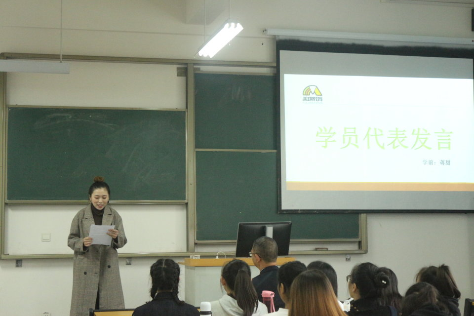 最后,员工代表蒋甜对公司老师和美琪教育的细心栽培表达感谢,号召同学们抓住这次培训机会,认真学习,刻苦钻研,学以致用,严于律己。