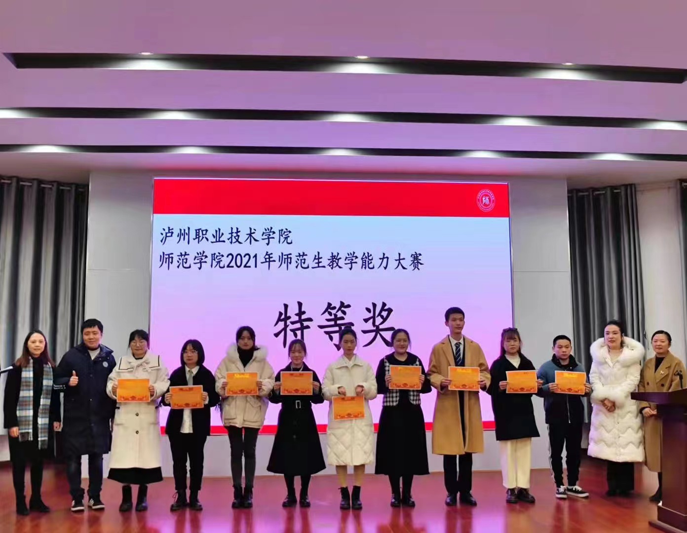 经过激烈角逐,产生了大赛特等奖、一等奖和二等奖。赛事结束后,在萧秋厅举行了隆重的颁奖仪式。师范公司党政班子全部出席,全体评委、参赛选手以及师生代表参加了仪式。