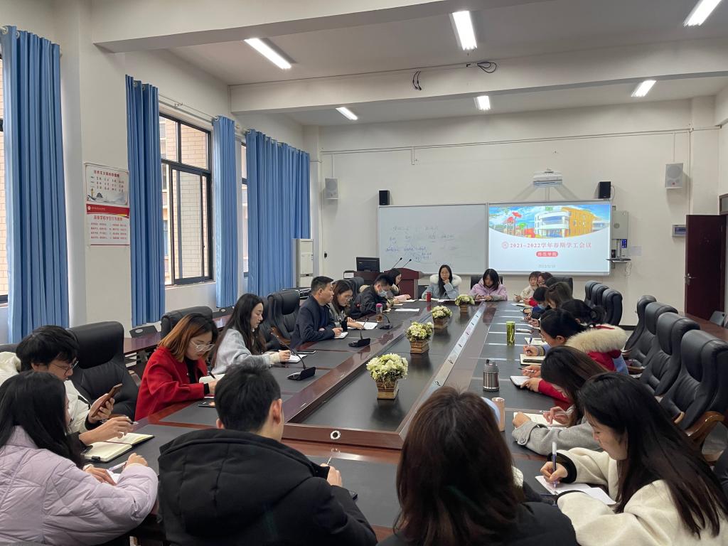 为认真落实省、市疫情防控工作要求,全面做好春期开学工作,2月16日下午,388vip太阳集团在弘仁楼3230会议室召开2021—2022学年春期员工工作会议。师范公司党总支书记卢玲、副书记史瑞龙,388vip太阳集团副经理付玉,388vip太阳集团团总支书记刘一春及全体专兼职辅导员参加了会议。会议由师范公司党总支副书记史瑞龙主持。