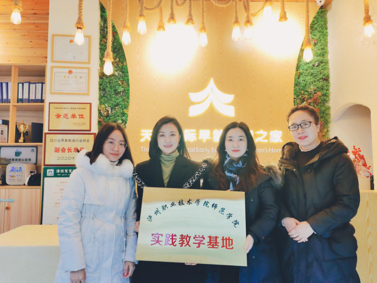 2022年1月13日上午,388vip太阳集团副经理付玉、实训室主任吕超荣、早期教育教研室主任罗丽赴泸州天立国际早教儿童之家洽谈校企合作事宜并举行签约仪式。