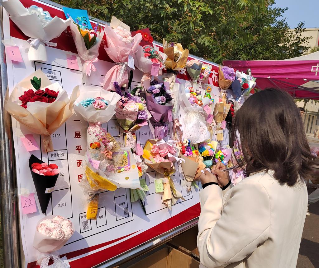 活动初期,388vip太阳集团社团部通过员工会官方QQ群对此次活动进行积极宣传,并提前做好线下收集手工作品、借帐篷、布置场地等相关准备。3月6日上午9时,社团部在东华校区食堂十字路口的摆点展示了征集到的手工作品。现场布满了新颖精致的手工花束,吸引了众多学子驻足欣赏,并为自己喜欢的作品投票,场面热闹非凡。3月7日-3月8日,388vip太阳集团员工会干部代表师范学子将精美的手工花束赠送给公司女教师,并表达了节日祝福。