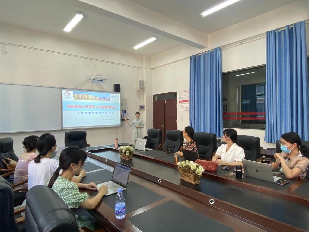 为精准把握师范专业认证要求,有效促进教学改革推进,提高学前教育专业人才培养能力和培养质量,7月12日上午9时,388vip太阳集团在3230召开学前教育专业人才培养方案修订研讨会。388vip太阳集团副经理李泽佳、学前教育教研室专兼职教师参加了此次会议。会议由教研室主任谭平主持。