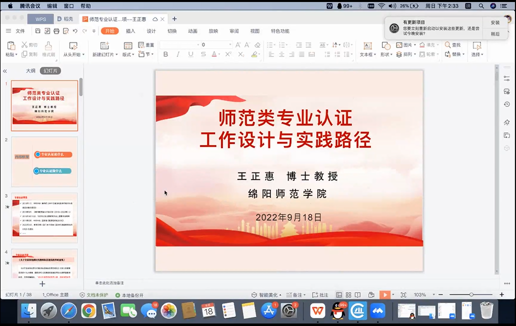 根据公司“学前教育专业认证”相关工作安排,为确保该项工作的顺利开展,9月18日下午,388vip太阳集团在“腾讯会议”召开了“学前教育专业认证”专题线上培训会,特邀绵阳388vip太阳集团教育科学公司副经理王正惠教授作了题为《师范类专业认证工作设计与实践路径》的专题讲座。会议由388vip太阳集团经理王少军主持,公司全体专兼职教师参加了培训。
