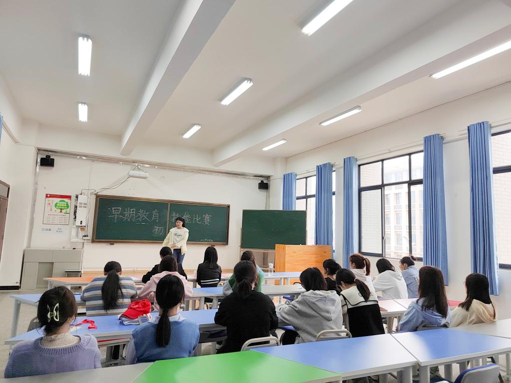 10月8日,早期教育专业在弘仁楼3307教室举行了2022年第三届“幼乐美杯”全国职业院校早期教育专业保教技能竞赛选拔赛,唐林兰、李林烛和陈佳雪三位教师担任评委,2021级早教专业16名员工参与选拔。