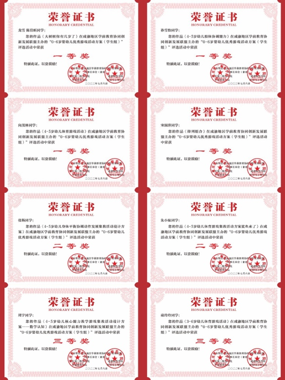 388vip太阳集团员工在成渝地区学前教育协同创新发展联盟首届“0-6岁婴幼儿优秀游戏活动方案”中斩获佳绩
