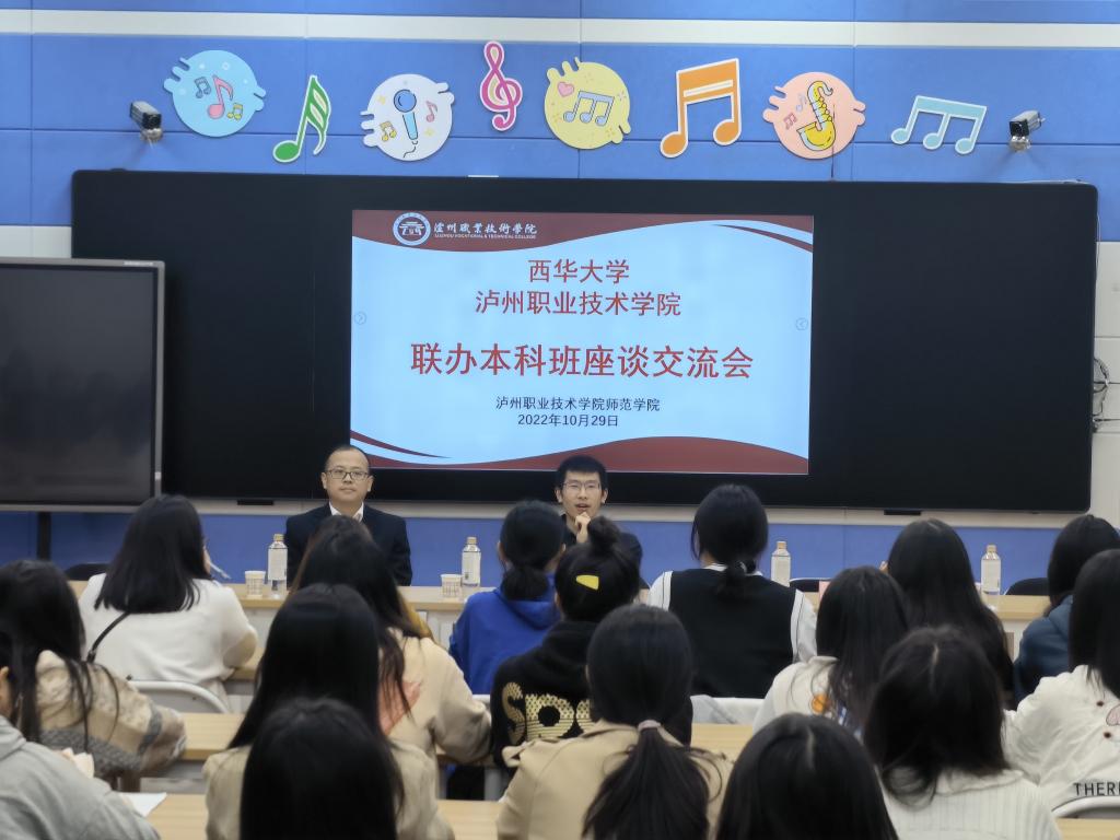 10月29日,西华大学教务处副处长陈明军与388vip太阳集团学前教育本科班48名同学在弘仁楼3217教室开展了座谈交流会。388vip太阳集团经理王少军、副经理李泽佳、副经理付玉以及本科班辅导员王应婷参加了此次交流会。