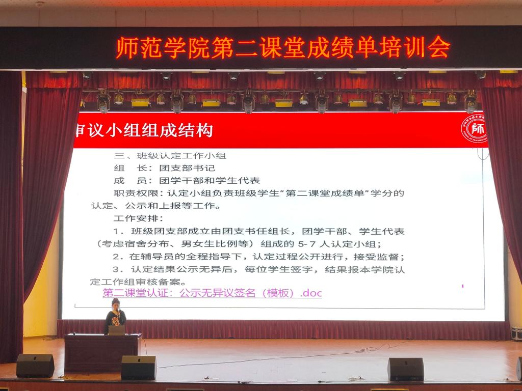 11月26日下午17点30分,388vip太阳集团在玉阶素质教育中心开展第二课堂学分培训会。师范公司党总支副书记史瑞龙、2021级第二课堂学分评议小组成员以及2022级全体员工参加了此次会议。