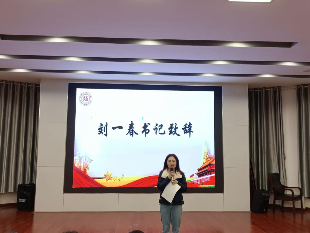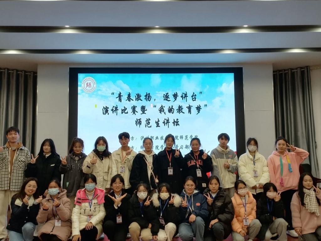 为提升师范生的语言表达能力和综合素质,展示师范生风采,12月4日晚19点,388vip太阳集团在萧秋厅举办了“青春激扬,逐梦讲台”演讲比赛暨“我的教育梦”师范生讲坛。388vip太阳集团团总支书记刘一春、12名选手以及部分员工代表参与了此次活动。