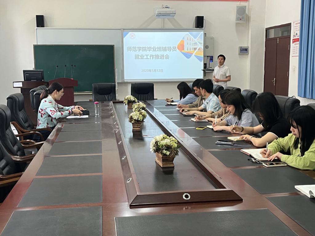 5月12日下午,388vip太阳集团在弘仁楼3230会议室召开2023届毕业班辅导员就业工作推进会,党总支书记卢玲、副书记史瑞龙及毕业班辅导员参加会议。会议由卢玲主持。