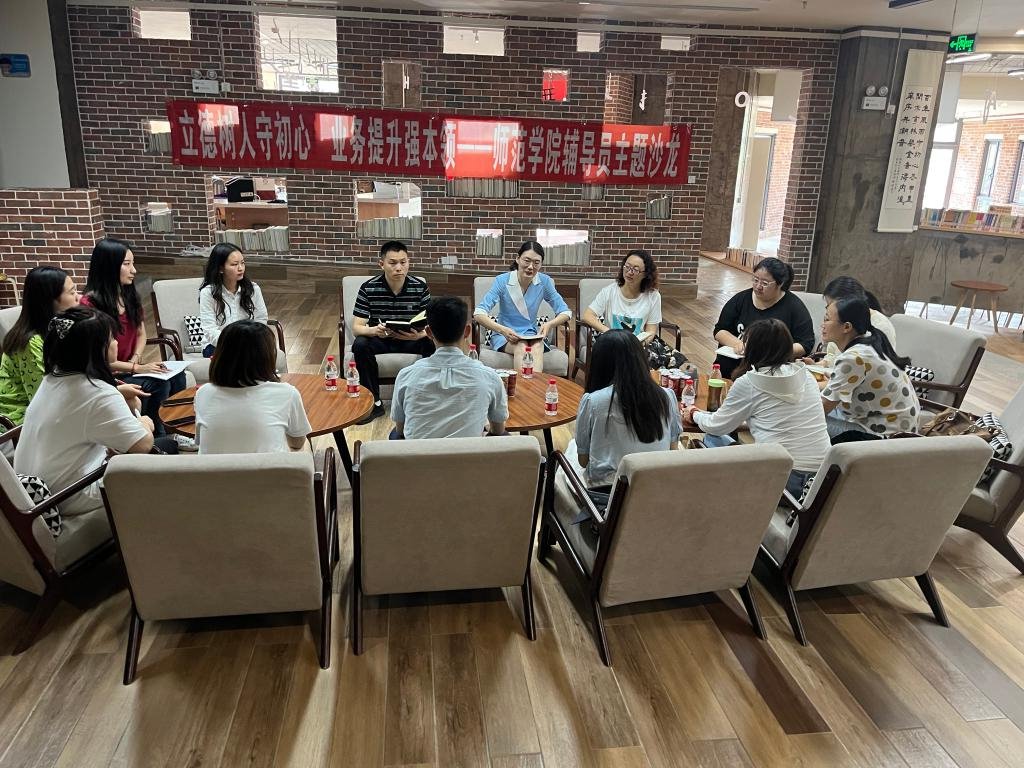 5月16日下午,388vip太阳集团在经纬1901阅读书吧开展“立德树人守初心业务提升强本领”辅导员主题沙龙活动,党总支书记卢玲、副书记史瑞龙及全体专兼职辅导员参加。
