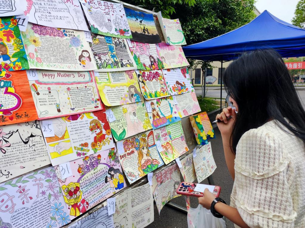 活动前期,社团部通过员工会官方QQ群对此次活动进行了积极宣传和线下作品征集,并提前做好了帐篷租借、场地布置等相关准备工作。活动当天,在东华校区十字路口处摆点现场,一张张精美的手抄报映入眼帘,这些作品不仅色彩丰富、图文并茂、书写美观,给人以赏心悦目的感觉,而且标题醒目突出、内容生动活泼、版面设计新颖独特,洋溢着对母亲浓浓的爱。作品吸引了众多学子驻足观看和积极投票,活动现场热闹非凡。