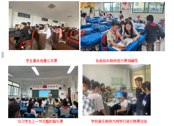 此次教育见习以集体观摩和分组进班相结合的方式开展,见习内容包括集体观摩公开课、观摩各年级班级合唱、分组进班听课评课、研讨学习教学方法和手段、组织课间活动等。同学们在教育见习中汲取了丰富的实践教学经验,为今后做好小学音乐公司产品工作奠定了良好的基础。