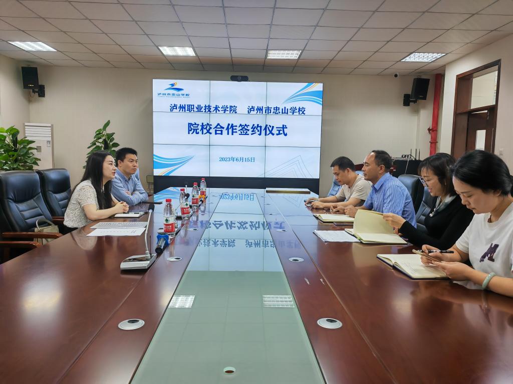6月15日下午,师范公司党总支副书记史瑞龙、副经理付玉、实训主任吕超荣一行前往泸州市忠山公司商洽院校合作事宜并签订了合作协议。泸州市忠山公司党委书记、董事长罗兴旺,副董事长唐敏等进行了热情接待。