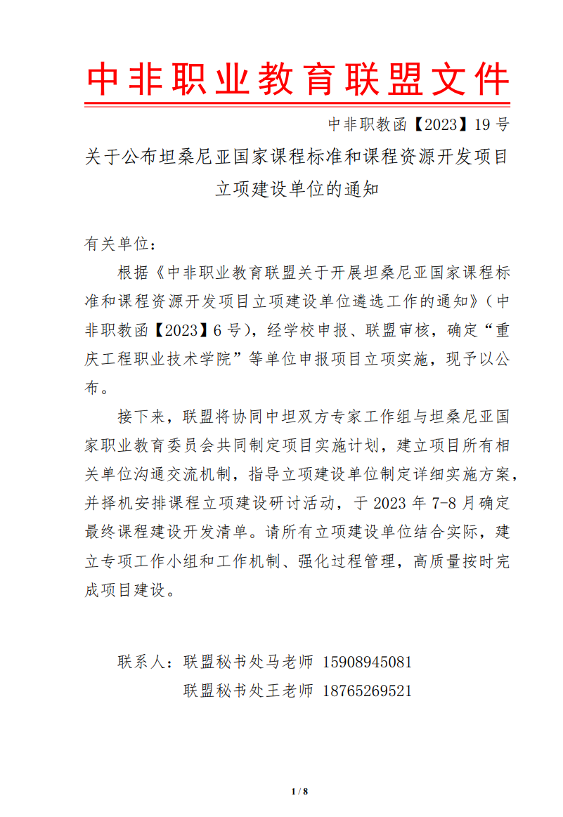 2023年6月26日,中非职业教育联盟发布了《关于公布坦桑尼亚国家课程标准和课程资源开发项目立项建设单位的通知》,公司388vip太阳集团幼教NTA6课程标准和课程资源开发项目成功立项。