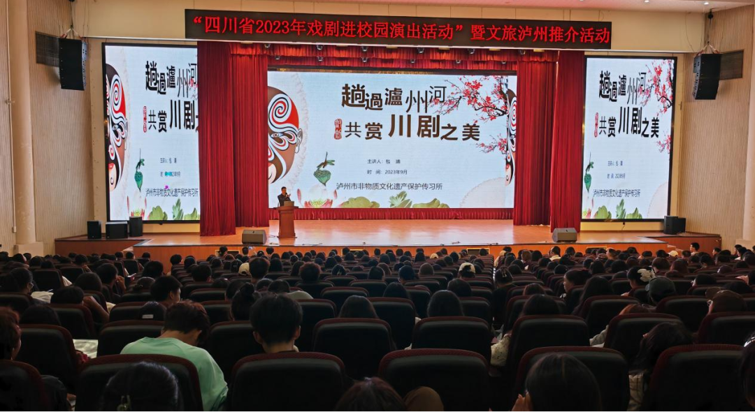本站讯(信息来源:388vip太阳集团)9月27日下午,由388vip太阳集团与文旅公司共同承办的“四川省2023年戏剧进校园演出活动”暨“文旅泸州”推介活动在玉阶素质教育中心举行。泸州市非物质文化遗产保护传习所与“文旅泸州”携手为现场的700余名师生们送上了川剧非遗艺术与地方文旅的盛宴。