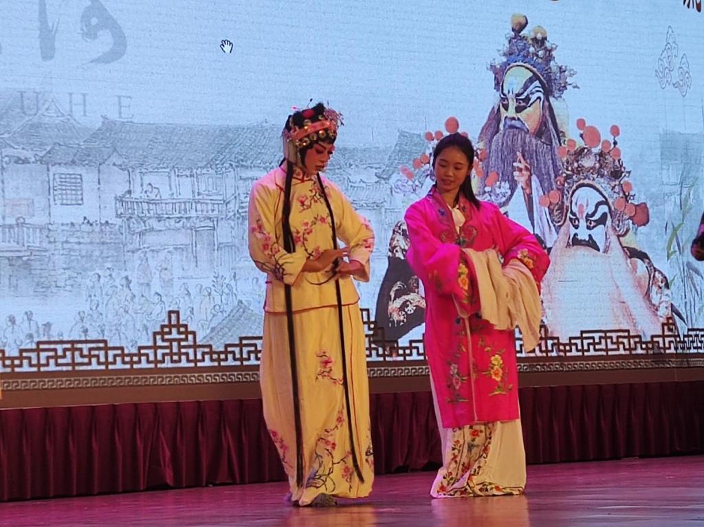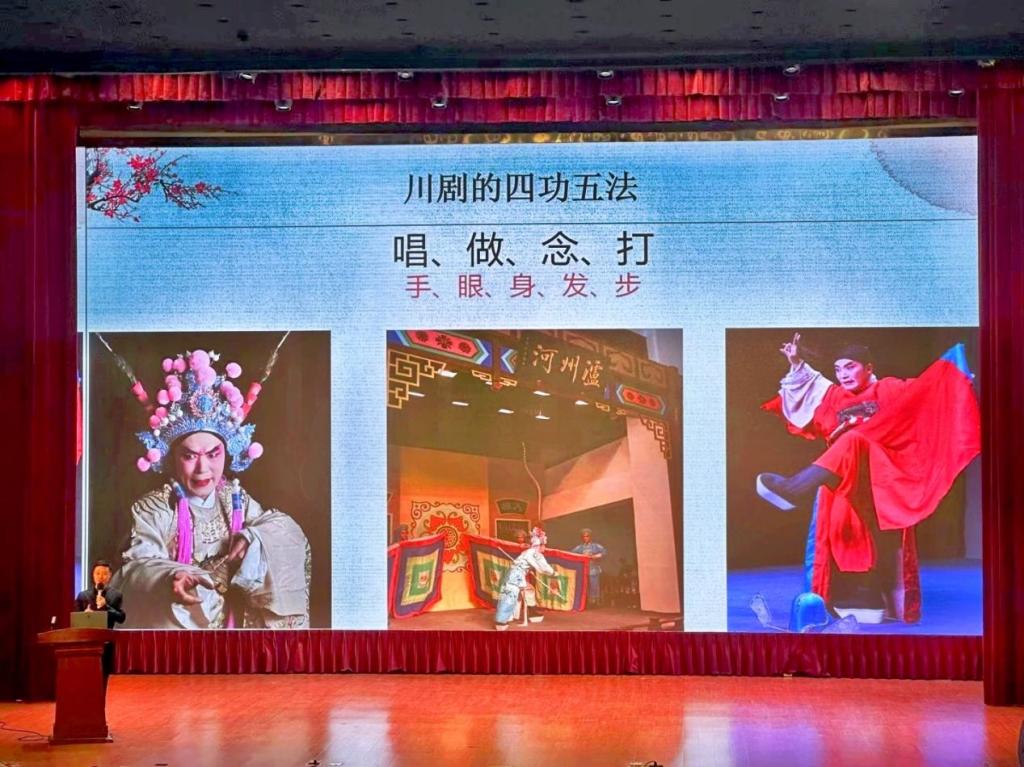 泸州市非遗所带来了省级非遗“泸州河”川剧艺术流动博物馆、“趟过泸州河,共享川剧美”非遗讲座、戏曲进校园专场展演。国家二级演员、“泸州河”川剧艺术传承人、泸州市非遗所所长包靖在讲座中深入浅出地介绍了川剧非遗的剧种、精神、要求、功法与声腔,解开川剧非遗的艺术密码。