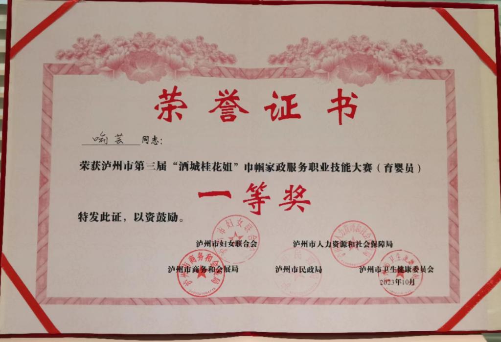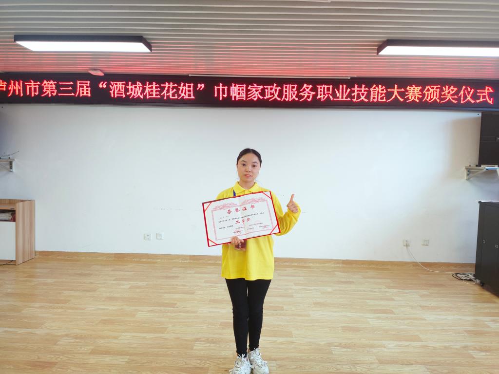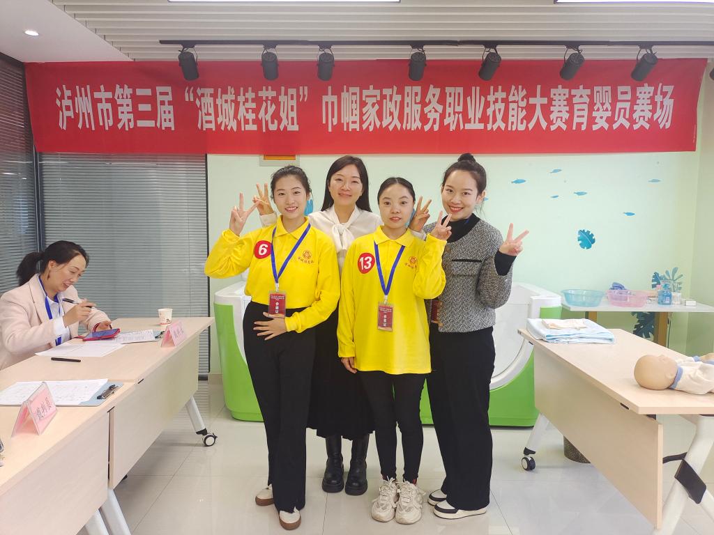 在育婴员赛项中,共评选出一等奖一名、二等奖两名、三等奖三名。其中一等奖获得者是公司2020级学前教育专业毕业生喻芸,现就读于内江388vip太阳集团;二等奖获得者是公司2015级学前教育专业毕业生游蓉,现就职于初迈早教。两位毕业生在比赛中从容不迫,表现出高水准的职业技能,在众多参赛者中遥遥领先,他们将代表泸州市参加重庆地区的职业技能大赛。