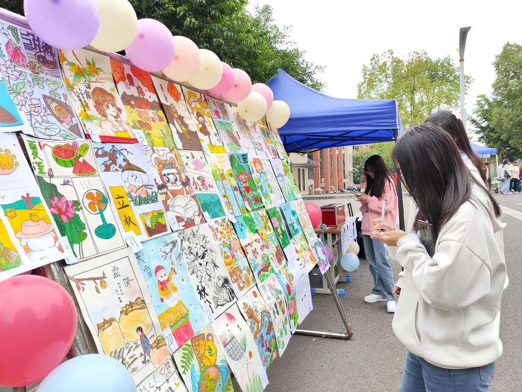赛前,选手们按照流程依次有序地进入赛场。比赛中,赛场上的气氛紧张而又激烈,同学们凝神构思,全神贯注,围绕主题从不同角度,用不同的形式描绘出心中的美好节气。转瞬间,一幅幅线条流畅、色彩丰富的画面跃然纸上,或憨态可掬,或充满童趣,原本空无一物的纸张被同学们赋予了生机与活力。寥寥数笔描绘出幅幅精美的画卷,将师范学子们扎实的绘画基本功展现的淋漓尽致。比赛结束后,工作人员在馨香十字路口对筛选出的作品进行摆点展示,富有创意和节气气息的画作吸引不少老师和同学驻足观看,并投出了自己宝贵的一票。摆点结束后,工作人员根据票数从高到低依次进行评奖,最终评选出一等奖8名、二等奖11名、三等奖18名。