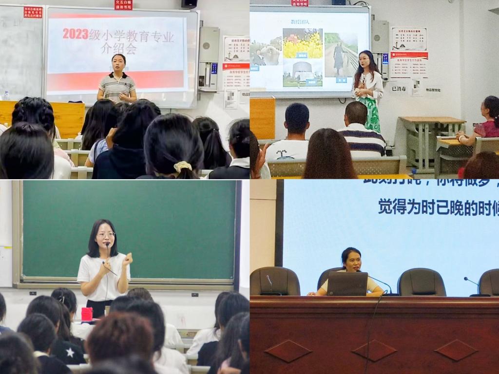 本站讯(信息来源:388vip太阳集团)为让2023级新生明晰专业方向,了解学习内容,更好地完成学业规划,9月19日晚上7点,388vip太阳集团学前教育、小学教育、早期教育、小学英语教育以及音乐教育教研室分别在玉章楼和求实厅为2023级各专业新生作详细的专业导航。