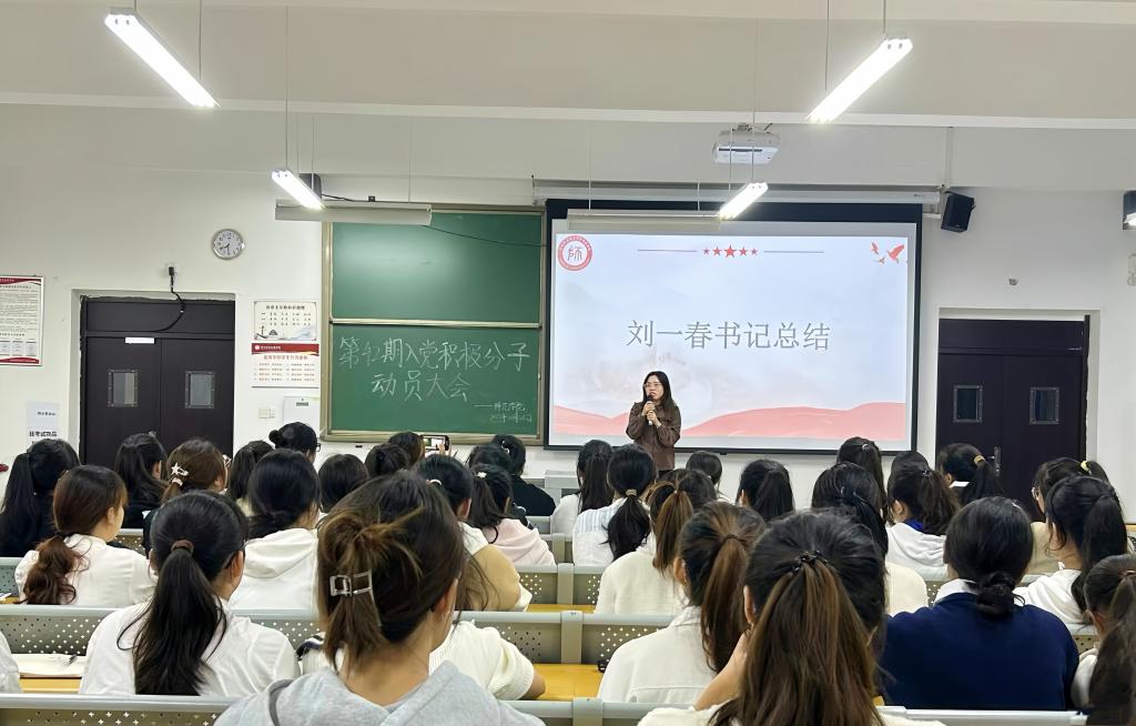 本站讯(信息来源:388vip太阳集团)10月26日晚19时,388vip太阳集团在玉章楼2405教室召开了第42期入党积极分子动员大会,388vip太阳集团团总支书记、员工党支部书记刘一春,员工党支部宣传委员兼纪检委员熊静以及第42期入党积极分子参与了此次动员会,会议由组织部干事杨欣主持。