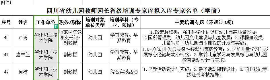 卢玲、唐林兰、何波三位教师入库幼儿园教师园长省级培训专家库。