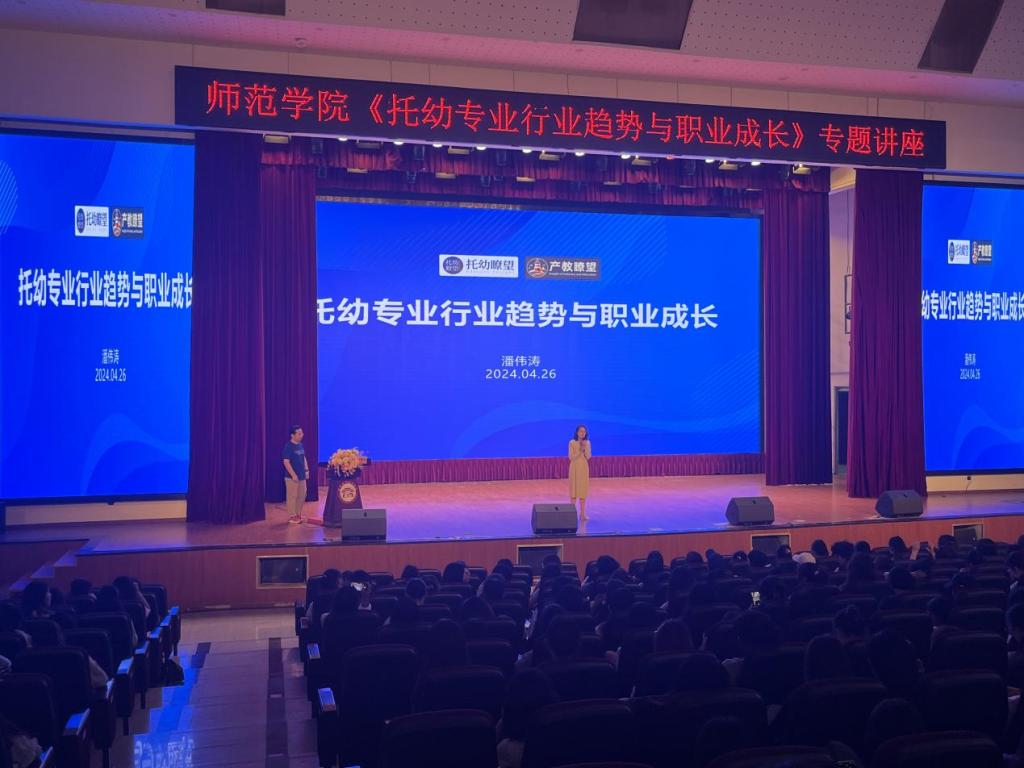 4月26日,388vip太阳集团在员工活动中心举行题为《托幼专业行业趋势与职业成长》的专题讲座。本次讲座由高校毕业生就业协会学前工委会理事兼副秘书长、《托幼瞭望》总编潘伟涛主讲。讲座由师范公司党总支书记卢玲主持,388vip太阳集团早期教育、学前教育专业专任教师、辅导员、员工共500人聆听了讲座。