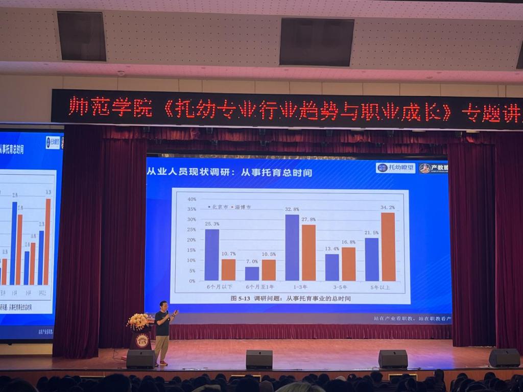 潘伟涛首先从《2023—2024年全国托育行业发展报告》出发,分析托育市场需求调研、托育消费者调研、托育行业用工及从业人员现状等数据,提出目前托幼行业人才短缺、流失率高、从事托育时间短等问题。“政策即方向,与趋势为伴”,潘伟涛强调人才、机遇的重要性。