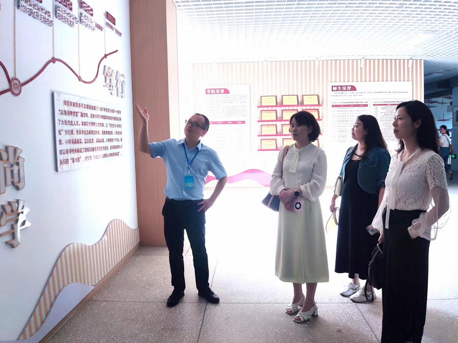 5月15日下午,卢玲、王少军热情接待了考察组,带领柏晶一行参观了学前教育专业实训室。在参观中,王少军详细介绍了幼儿园仿真实训室、奥尔夫音乐实训室等多间实训室的设计初衷、使用情况以及室外公共区域文化打造等情况。随后,双方就学前教育专业师范认证工作进行了交流。王少军介绍了公司师范认证工作的前期准备工作、专家进校考查等相关环节的注意要点与经验教训等。