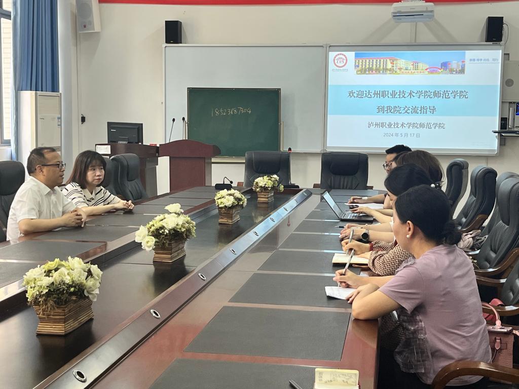 5月15-17日,达州职业技术公司388vip太阳集团经理柏晶、办公室主任欧晓燕、教务科科长何小钧、托育专业教研室主任尹丹、音乐教育专业教研室主任杨济舟、学前教育专业教研室主任黎晓敏等一行6人到公司就学前教育专业群建设进行调研交流,师范公司党总支书记卢玲、经理王少军、副经理李泽佳、副经理王春燕、学前教育专业教研室主任高原陪同调研。