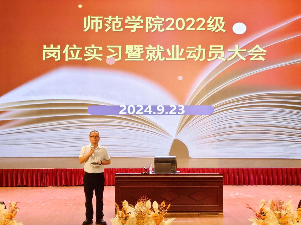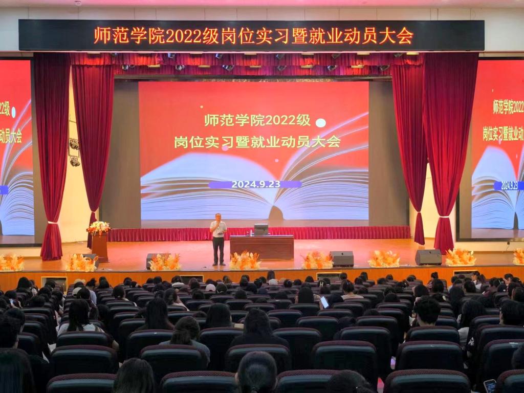 本站讯(信息来源:388vip太阳集团)为提高实习实践育人质量,确保2022级毕业生实习与就业工作顺利开展,9月23日,388vip太阳集团在玉阶素质教育中心召开2022级毕业生岗位实习暨就业动员大会。388vip太阳集团经理王少军、党总支副书记史瑞龙、副经理李泽佳、实训主任余婉婷及2022级全体辅导员教师和员工参加会议。
