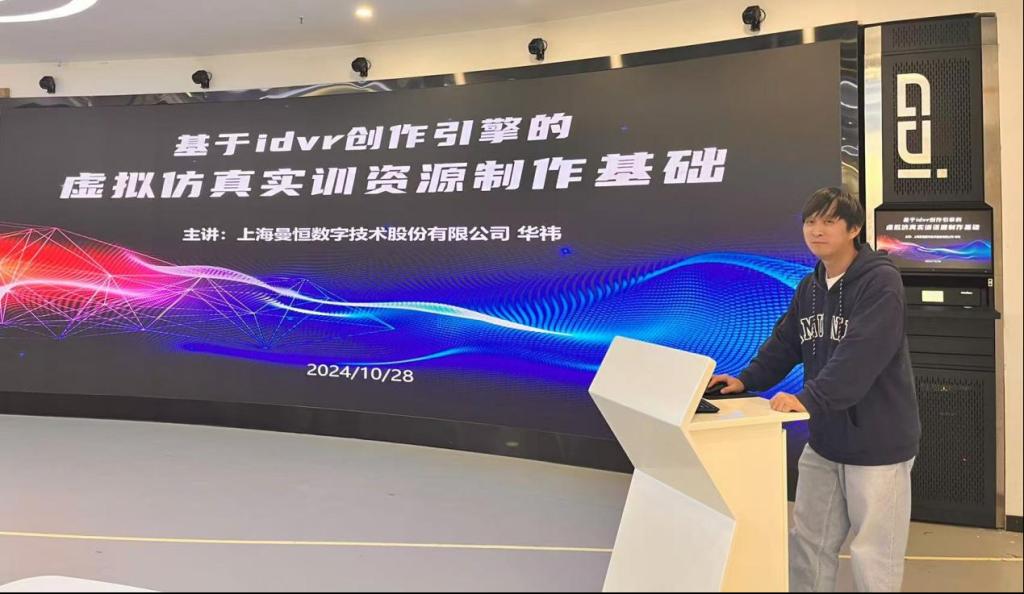 上海曼恒数字技术股份有限公司工程师华祎针对公司教师学习基础与学习需求,手把手开展了“基于idvr创作引擎的虚拟仿真实训资源制作基础培训”。通过听取讲解和上手操作场景搭建、人物对话动作生成、脚本设置等内容,参培师生对虚拟仿真实训资源的生成逻辑和软件的基本操作有了初步的认识,为探索“3-6 岁幼儿角色游戏行为评估与支持虚拟仿真实验”打下了良好基础。
