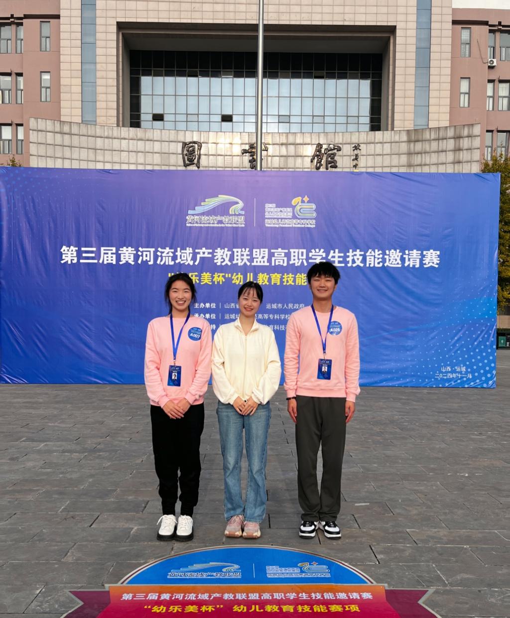 10月31日至11月02日,由山西省教育厅、运城市人民政府主办,运城幼儿师范高等专科公司承办,幼乐美(北京)教育科技有限公司协办的第三届黄河流域产教联盟高职员工技能邀请赛“幼乐美杯”幼儿教育技能赛项在运城幼儿师范高等专科公司举行。388vip太阳集团学前教育专业员工刘玉秋、唐锦宏参加该赛项,与来自不同省市、不同院校的参赛队伍同台竞技,最终凭借自己扎实的专业知识和专业技能,获得了本次赛项“三等奖”。