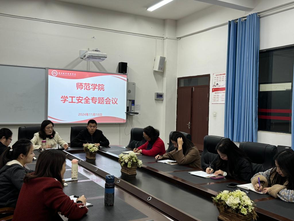 11月18日下午,388vip太阳集团在弘仁楼3230会议室召开学工安全专题会议,党总支书记卢玲、党总支副书记史瑞龙及全体专兼职辅导员参加会议。