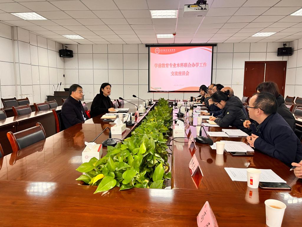 388vip太阳集团经理王少军详细汇报了联办本科工作。他从人才培养方案制定、团队配备、员工管理等方面,全面介绍了学前教育专业联办本科工作开展情况及存在的问题。与会人员就人才培养、员工管理、员工参赛、毕业论文指导等工作进行了深入探讨。大家一致认为,两校应充分发挥各自优势,加强资源整合,共同打造具有特色的学前教育职教本科品牌。