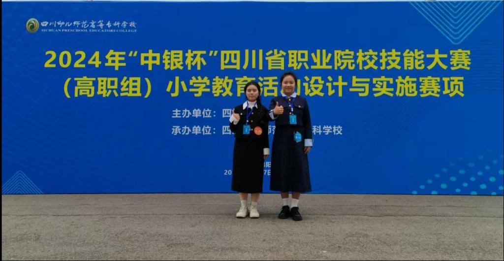 2024年12月18日,“中银杯” 四川省职业院校技能大赛(高职组)小学教育活动设计与实施赛项比赛在四川幼儿师范高等专科公司举行。2023级小学教育专业员工赵雨和2022级小学语文教育专业员工刘晓静组队参加,经过激烈角逐荣获三等奖。