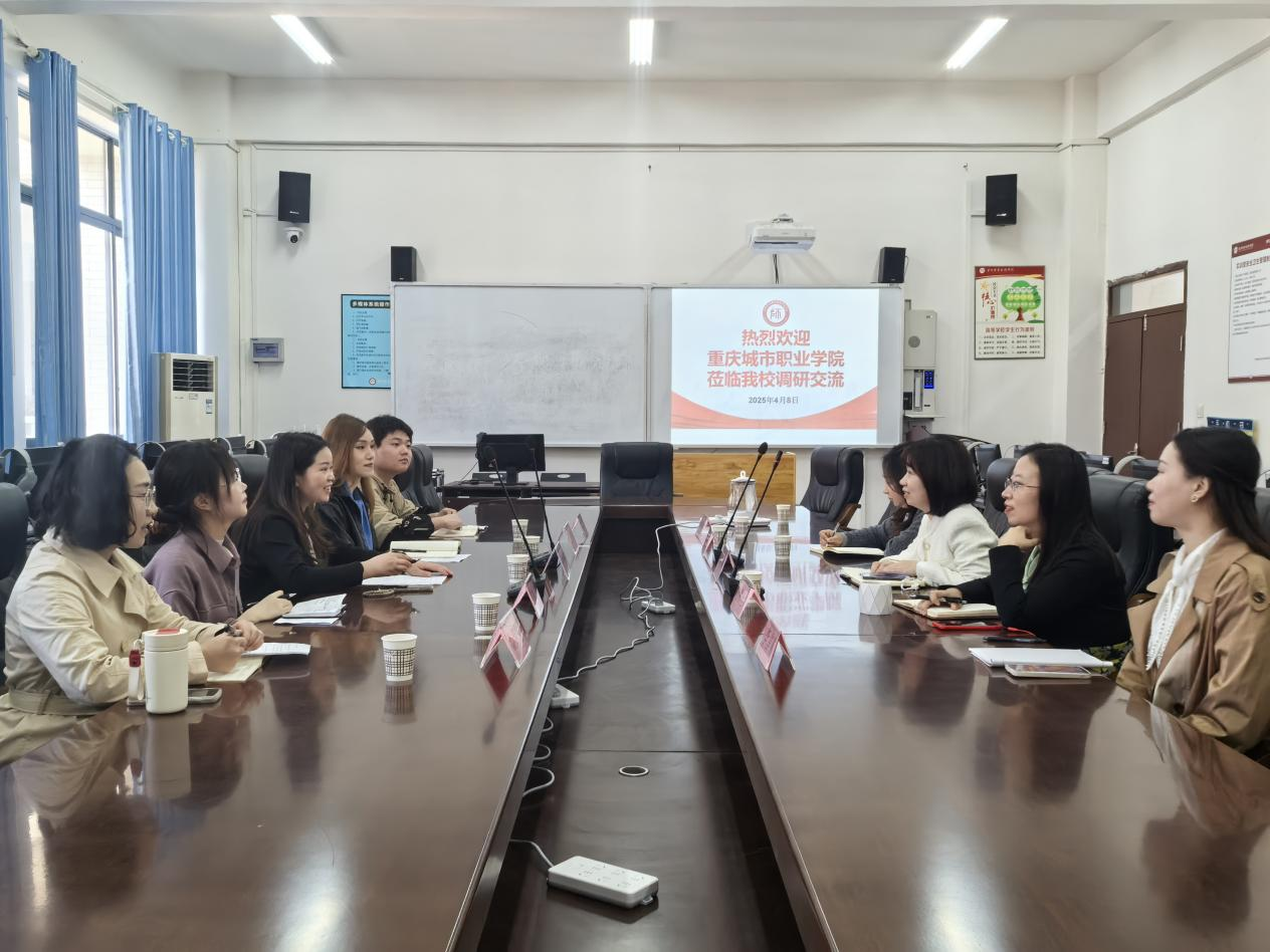 4月8日,重庆城市职业公司文旅康养公司发展中心主任张秀珊率队到公司388vip太阳集团调研交流。388vip太阳集团副经理李泽佳、学前教育专业带头人唐林兰等参与交流座谈。
