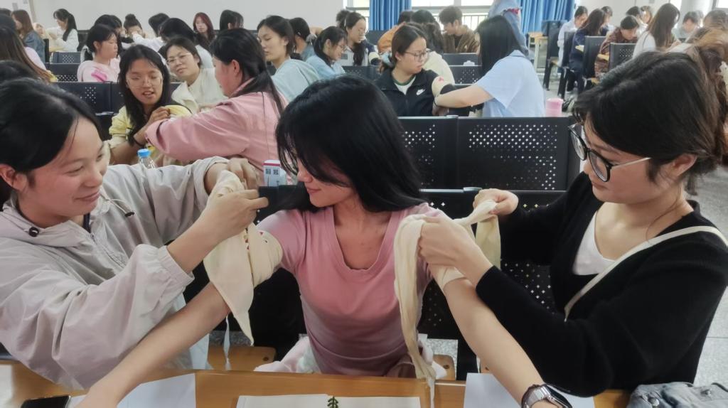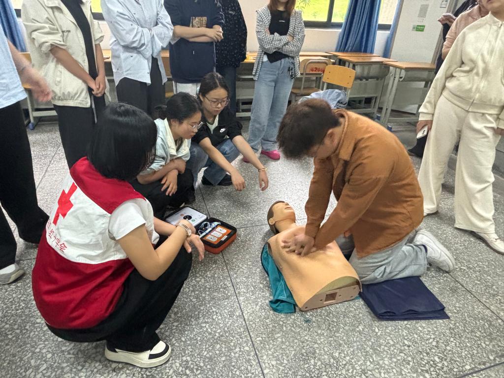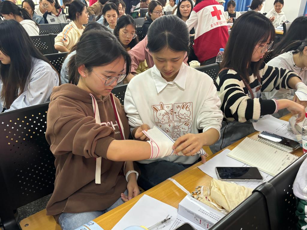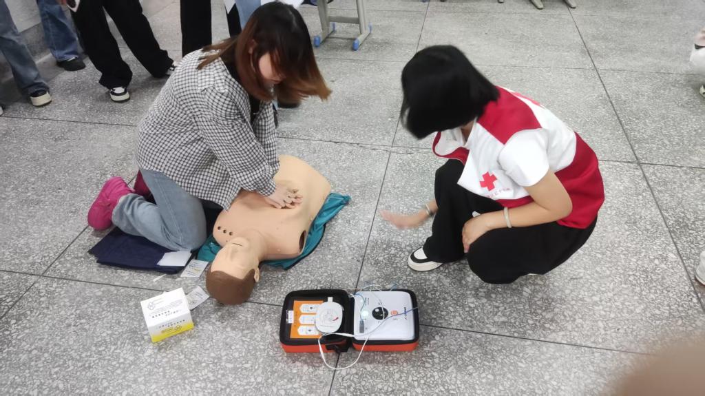 本次培训分为四个批次,每个批次近100人。培训内容包含8学时理论课程与4学时实操考核,涵盖心肺复苏(CPR)、自动体外除颤仪(AED)使用、气道异物梗阻处置及创伤包扎四大模块。市红十字会结合校园场景,特别强化了运动损伤处理、员工突发晕厥应急响应等实用性内容,通过模拟人流密集场所急救案例提升教学针对性。