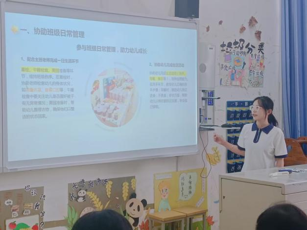 汇报现场,员工代表们结合丰富的实习案例,生动讲述自己在课堂教学中的创新尝试、与儿童互动的暖心故事,以及对师德师风的深刻理解。他们以详实的数据、直观的图片和视频,展现出扎实的专业功底与出色的实践能力。在学前教育分会场,员工代表分享了通过游戏化教学激发幼儿学习兴趣的成功经验;小学教育分会场中,员工代表则结合班级管理实际,阐述了如何运用心理学知识引导员工健康成长。