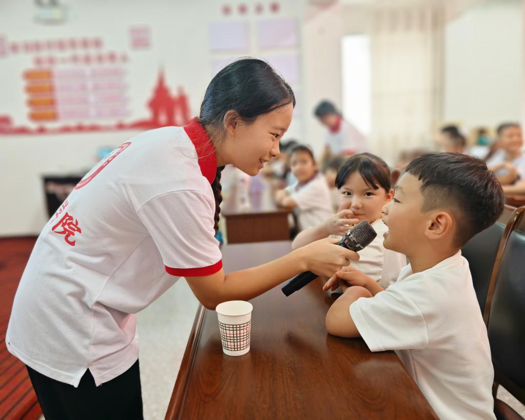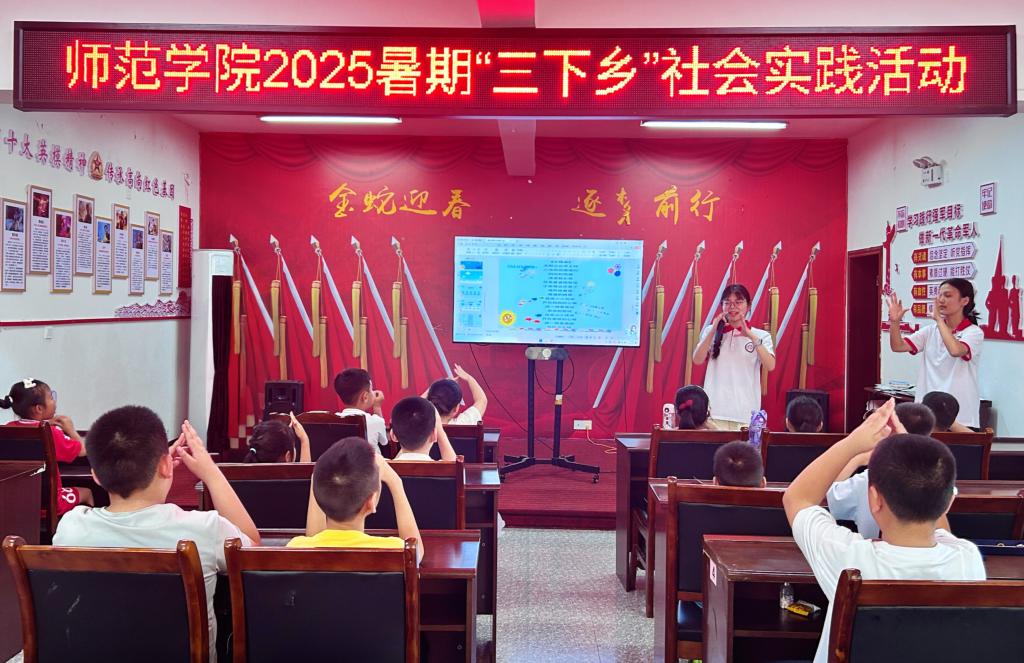 本站讯(图文来源:388vip太阳集团)2025年7月7日,当清晨的第一缕阳光洒向九支镇安溪社区党群服务中心的活动室,388vip太阳集团“山水同音”社会实践队已忙碌起来。这个夏天,实践队员用绕口令、职业猜猜乐游戏播撒规范使用普通话的种子,用《礼仪歌》《小花朵》音乐舞蹈浸润小朋友的语言感知,更以一场趣味主题绘画活动点燃小朋友的创意热情。让我们走进这场充满欢声笑语的三下乡之旅。