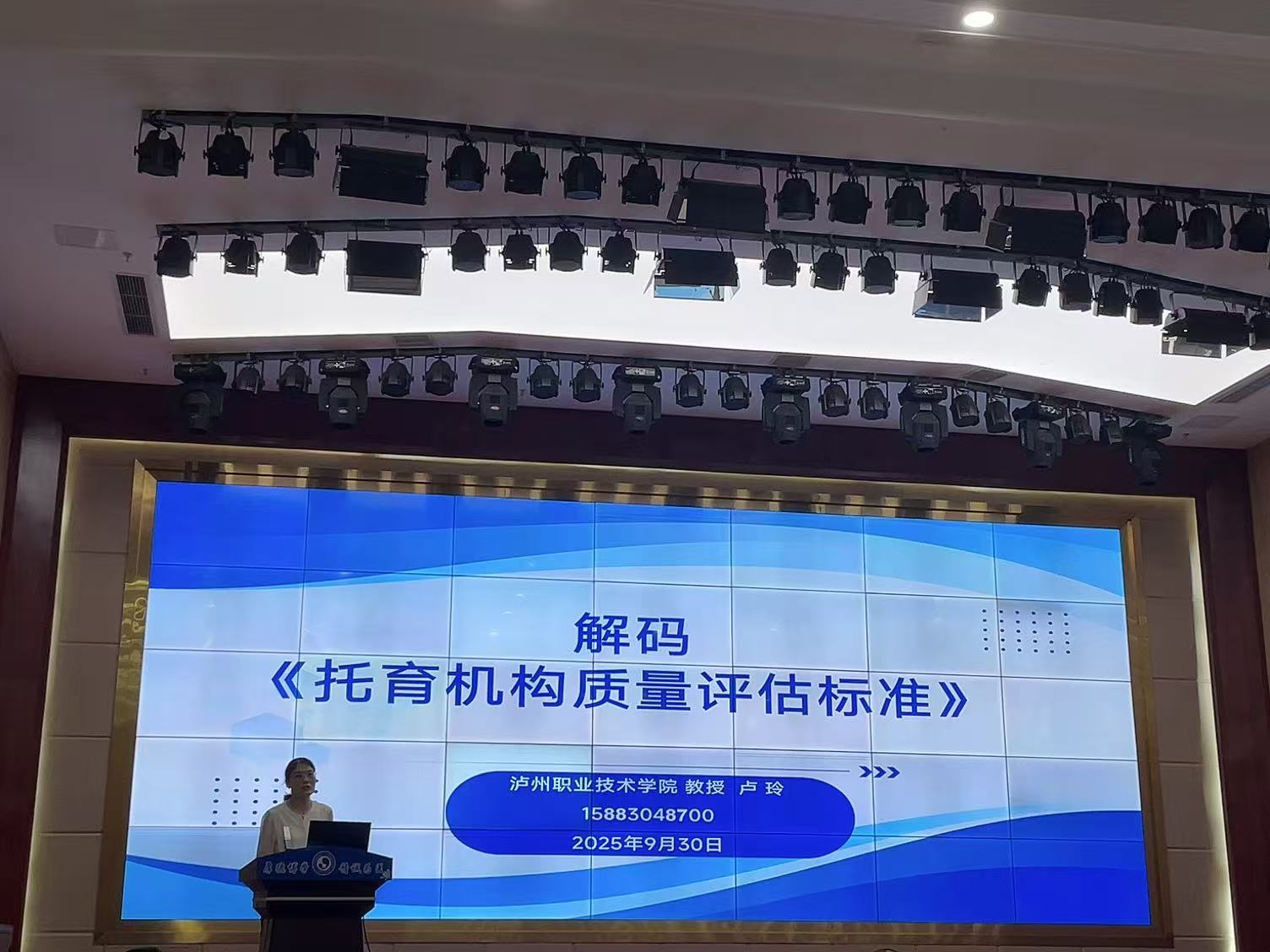 会上,工作室主持人卢玲受邀作了题为《解码〈托育机构质量评估标准〉》的专题讲座。卢玲从标准诞生背景、指标逻辑透视、关键指标解读和现场评估方法四个方面,系统介绍了《托育机构质量评估标准》的主要内容,并重点围绕“保育照护”与“养育支持”两大评估指标进行了详细解析。
