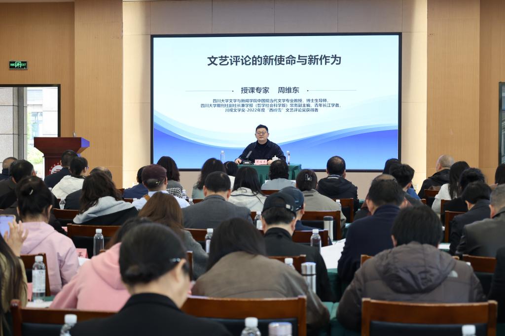 会议期间,与会代表共同学习了党的二十届四中全会精神,并围绕新时代文艺评论的使命与担当开展专题学习与研讨。四川大学周维东教授作“文艺评论的新使命与新作为”专题讲座,从文艺高峰打造、自主知识体系构建、文艺评论写作与投稿策略等方面进行了深入浅出的讲授,强调新时代文艺评论要立足本土经验,构建中国自主的知识体系,并针对不同发表平台的特点,提升评论文章的精准性与表达力。