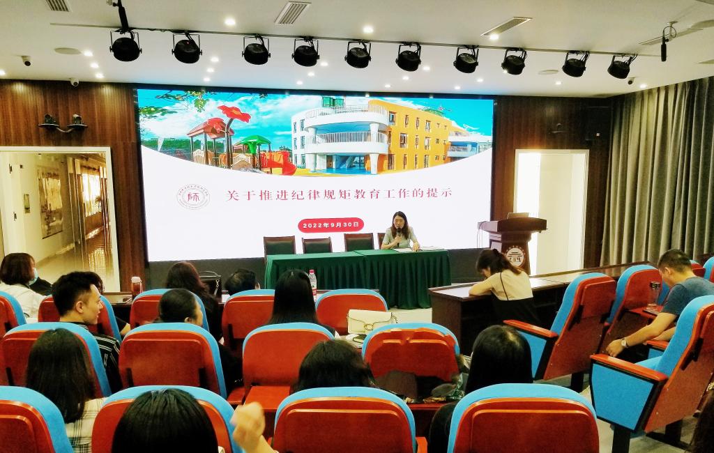 为进一步增强全体教职工纪律规矩意识,营造明纪知法的良好生态,为公司高质量发展提供坚强纪律保障,9月30日下午,师范公司党总支在公司教师发展中心五楼沉浸式教室召开主题党日活动。