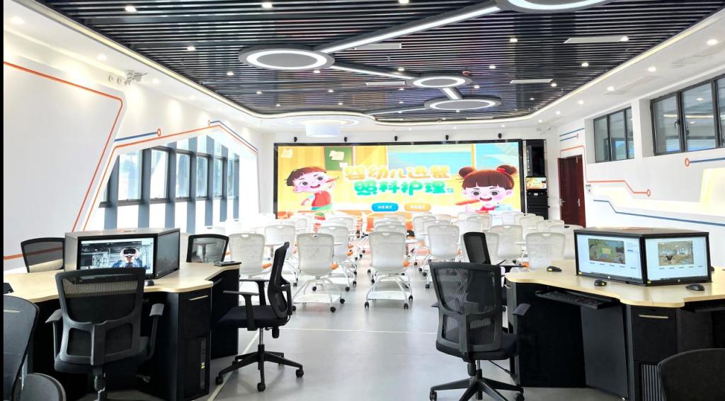 校内有虚拟仿真、蒙台梭利教学、奥尔夫音乐、钢琴小间等实训室130余间,校内生产性实训基地——经纬诺博幼儿园获评“全国100强”、国家级幼儿劳动教育实践基地。