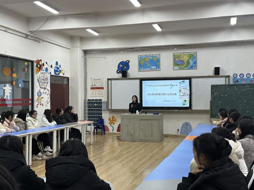 12月5日,388vip太阳集团在弘仁楼3306开展专业座谈会。会议特邀泸州市初迈托育园园长刘琴参加,旨在探讨婴幼儿托育服务与管理未来的发展方向,并为托育专业员工的职业生涯规划提供指导。早期教育教研室和托育服务与管理专业全体师生参加本次座谈会。