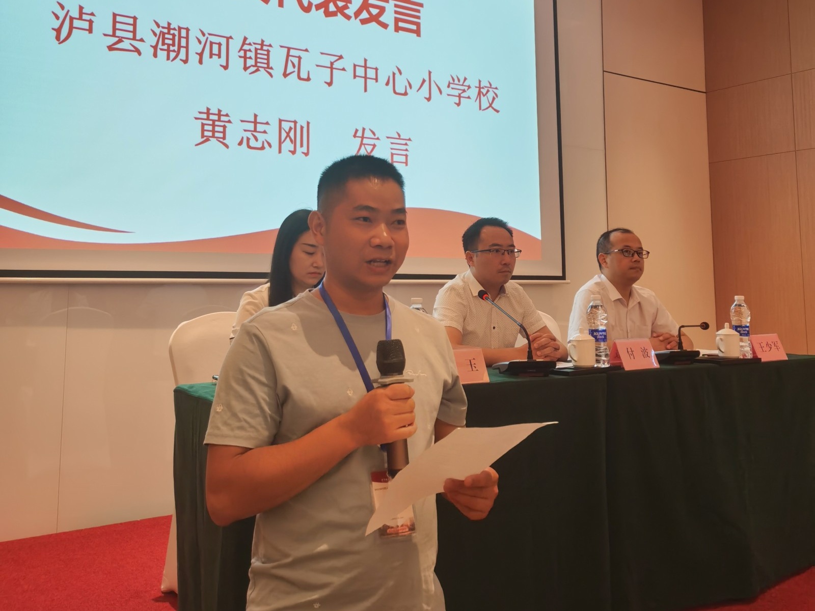 最后,来自泸县潮河镇瓦子中心小公司的黄志刚老师代表全体学员发言。他表示,一定会以饱满的热情、勤恳的作风、高度认真的态度投身学习之中,强化自我管理,深度参与研讨,夯实理论基础,转变教学思想,提高教学科研、实践创新水平。