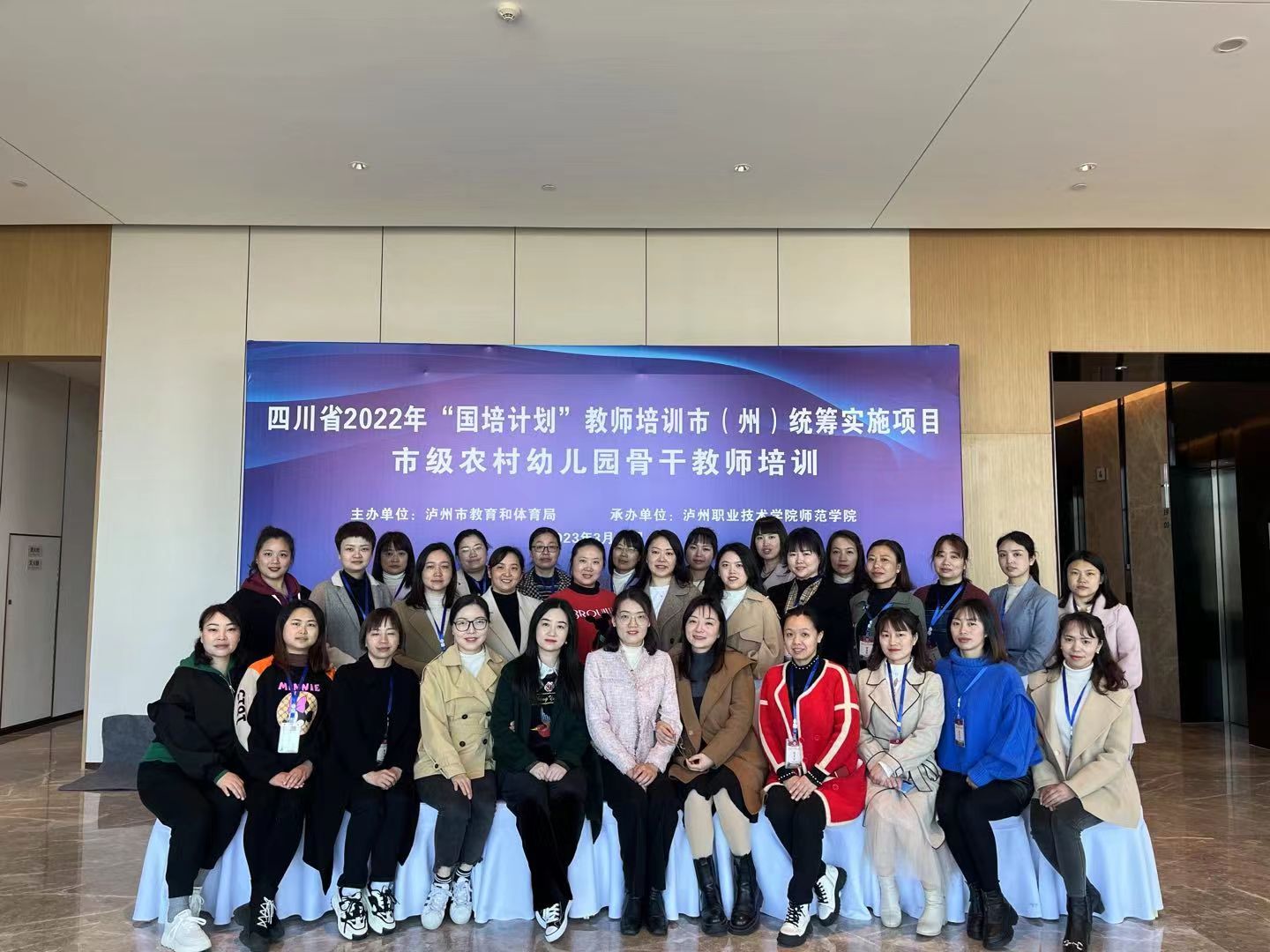 3月13日,由泸州学前教育职教集团和388vip太阳集团联合举办的四川省2022年“国培计划”教师培训市(州)统筹实施项目——市级农村幼儿园骨干教师培训班开班仪式在龙涧假日酒店长江厅举行。师范公司党支部书记卢玲、泸州市教育科学研究所师培中心负责人陈邦和全体参培学员参加仪式。仪式由388vip太阳集团副经理付玉主持。