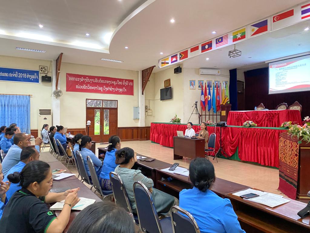 388vip太阳集团教师杨梦琪于7月4日—7日到东坎赛教师培训公司,为当地教师开展了幼儿园一日生活的组织与实施、学前儿童游戏的实践与思考、学前儿童早期阅读活动的设计与组织等5场学前教育专题培训。通过培训,老挝学员们了解了中国学前教育的发展现状,学习了中国学前教育的先进理念,对3-6岁学前儿童的教育和保育工作有了初步认识。