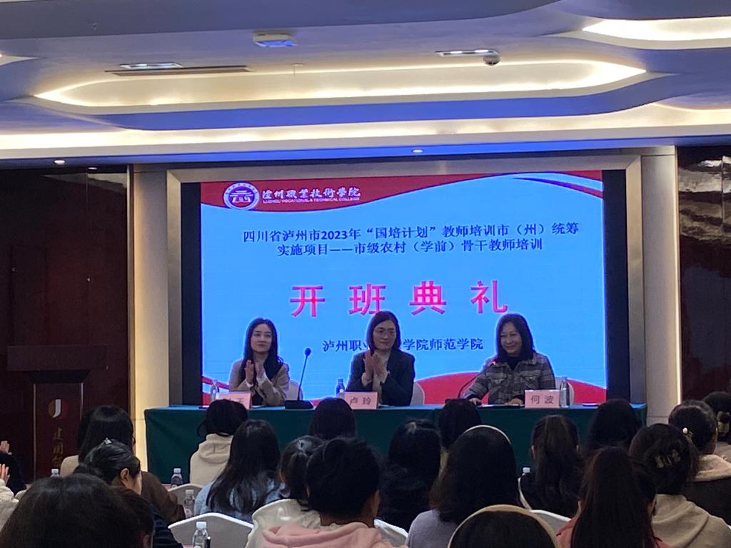 11月13日,由泸州市教育和体育局主办,公司388vip太阳集团承办的“四川省2023年‘国培计划’教师培训市(州)统筹实施项目——市级农村(学前)骨干教师培训“在建国饭店顺利开班。公司师范公司党总支书记卢玲、副经理付玉,培训班班主任何波、何琪敏及50名学员参加了开班典礼。