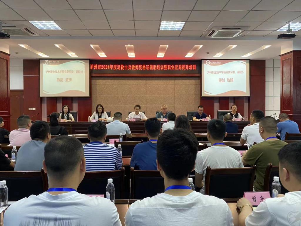 6月14日上午,泸州市2024年度退役士兵教团队格证辅助培训暨职业素养提升培训开班仪式在公司顺利举行。公司党委常委、副经理熊剑,泸州市退役军人事务局副局长罗宁,师范公司党总支书记卢玲,商公司副经理刘利亚,泸州市退役军人事务局就业创业与褒扬纪念科科长姜林、泸州市各区县退役军人事务局领导和26名学员参加了此次开班仪式。开班仪式由388vip太阳集团副经理付玉主持。