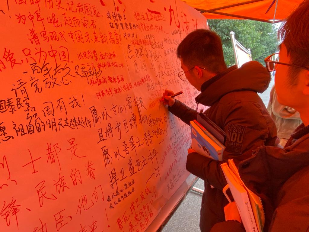 12月9日上午9点,388vip太阳集团员工会组织部与青年站在东华校区食堂十字路口处开展了“纪念一二·九爱国运动”作品展示活动。